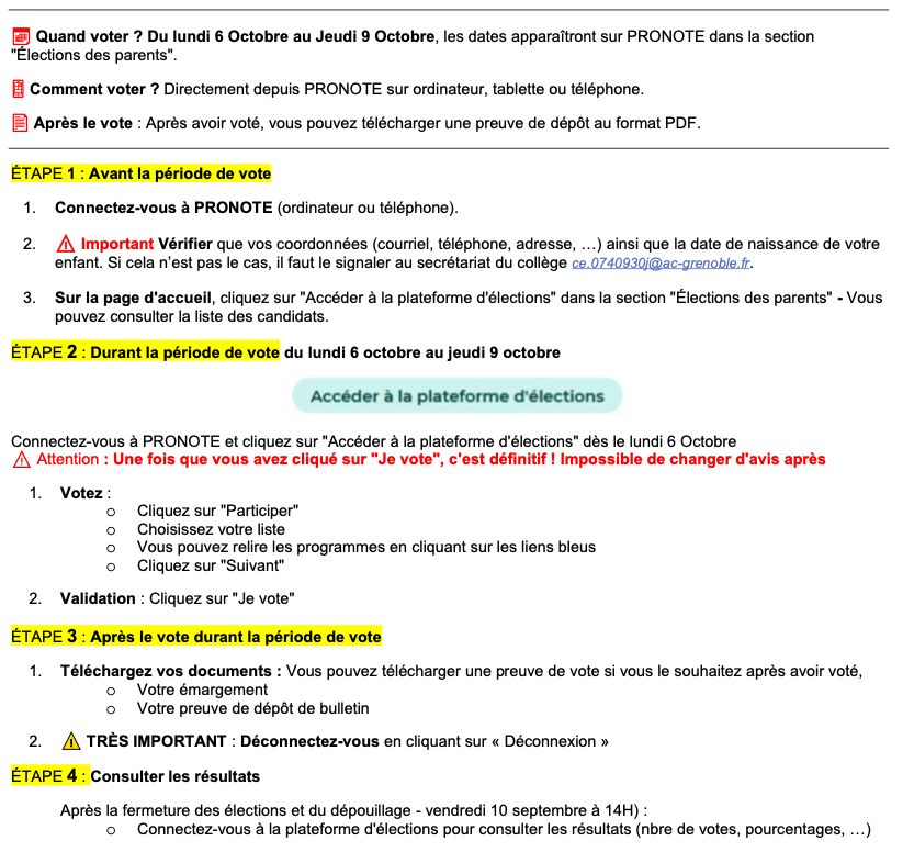 du 6 au 9 Octobre - Élection des représentants des parents d’élèves