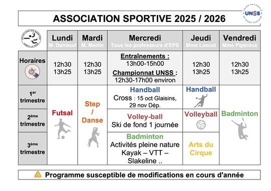 PROGRAMMATION DE L'ASSOCIATION SPORTIVE