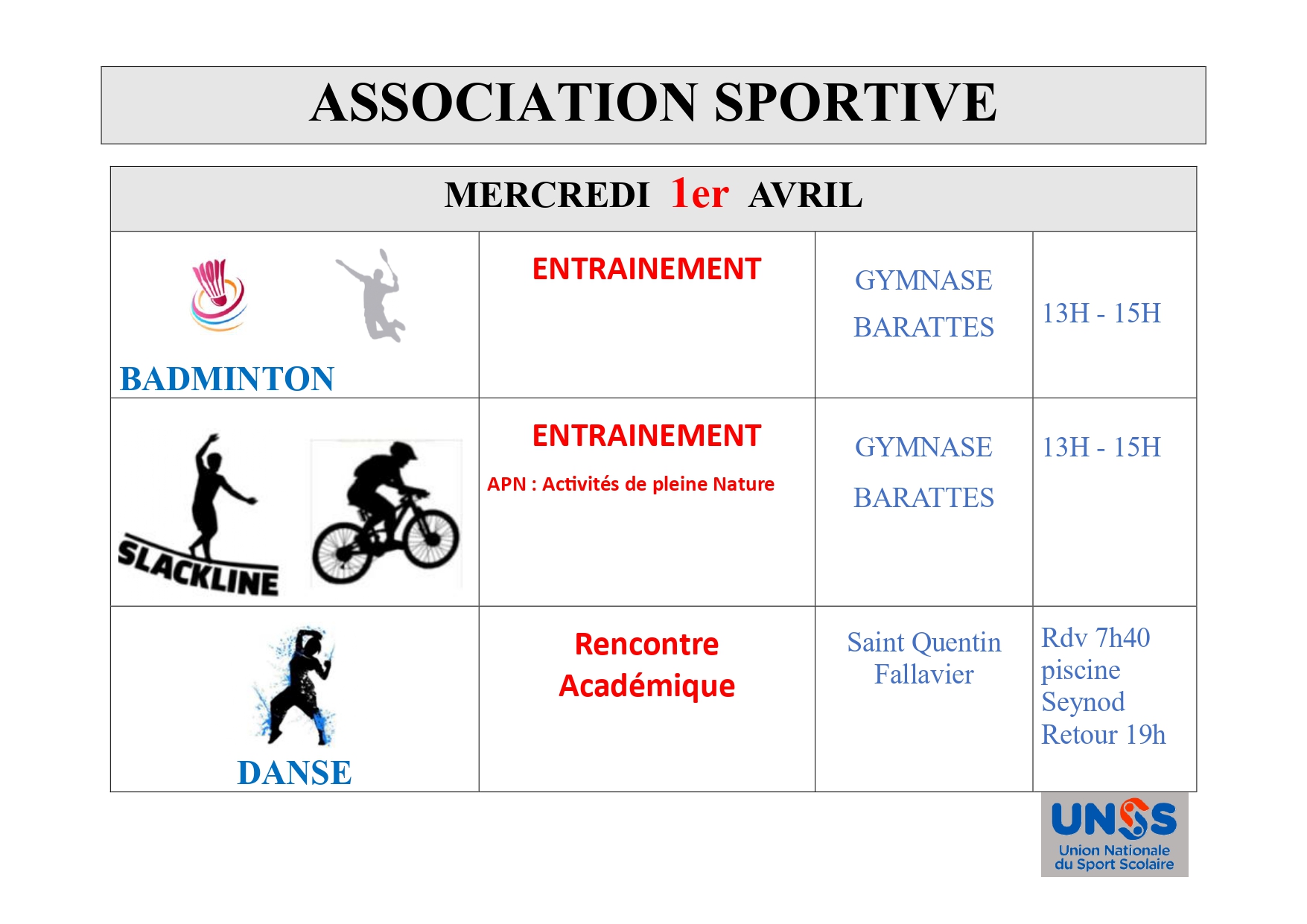 🚲🏸💃AS du Mercredi 1er Avril 🚲