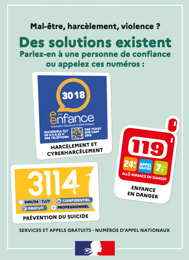 N’hésite pas à en parler à un adulte ou à appeler ces numéros.